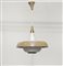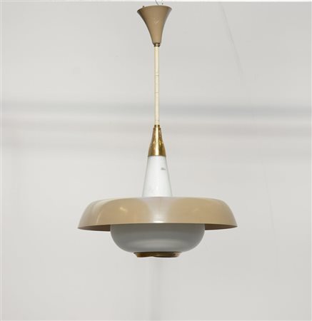 Lampadario con paralume in metallo laccato color tortora. Italia, sec XX (h...