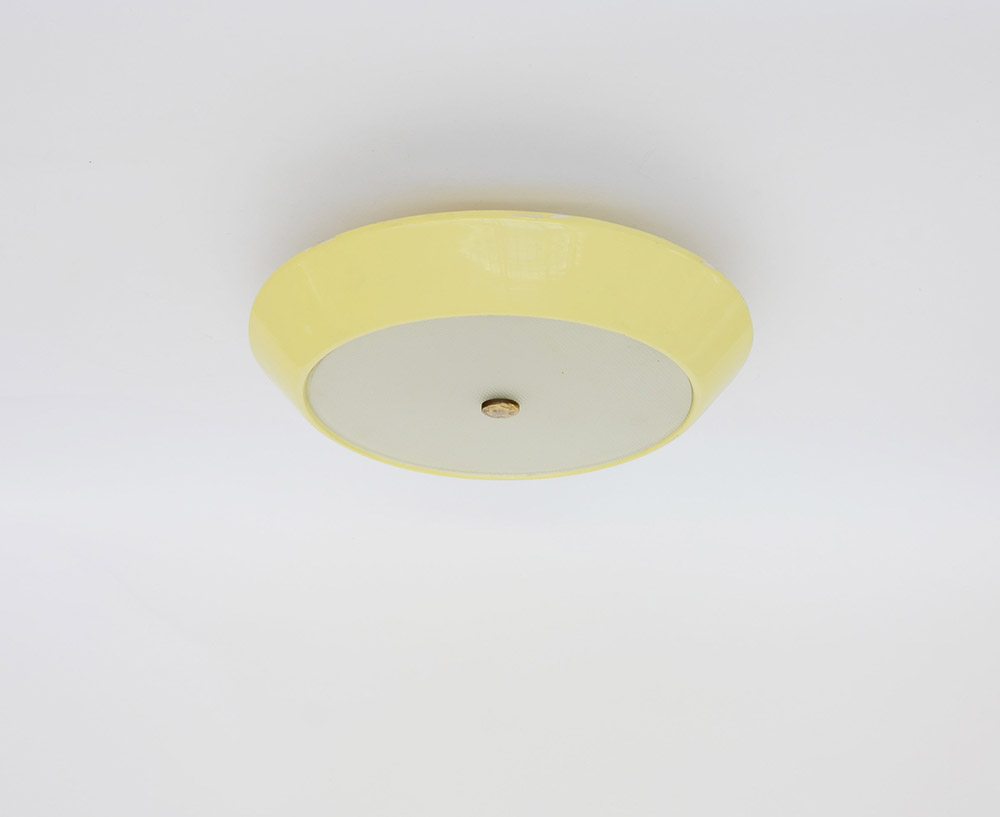 Plafoniera con fascia in metallo laccato giallo. Anni 60 (d cm 42) (lievi difetti)