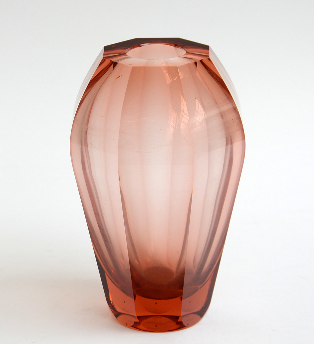 Manifattura Moser. Vaso ottagonale in cristallo molato rosato. Prima metà del...