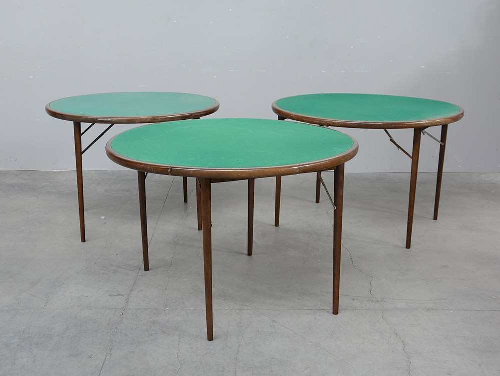 Lotto composto da tre tavoli da gioco con gambe pieghevoli in legno massello...