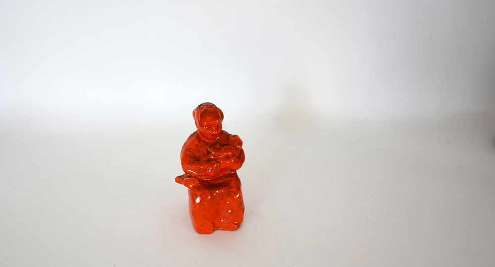 "Maternità", figura in ceramica smaltata in rosso. Firmata "Galdabino" sotto la base (h cm 15)