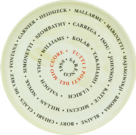 Sarenco (Isaia Mabellini) Vobarno (Bs) 1945 Tutti i poeti del mio cuore, 1998 Multiplo in porcellana, diametro cm. 41, es. 76/100 Sul verso: firma, data e tiratura.