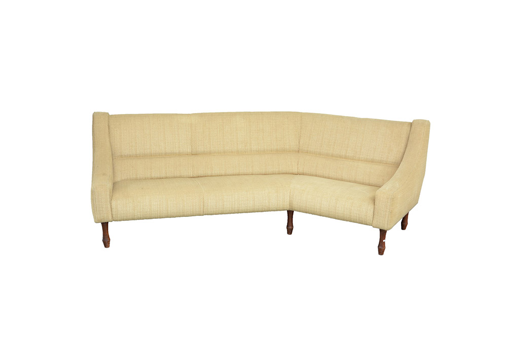 Sergio Asti 1926 Divano modello "884". Produzione Cassina 1960. Legno e rivestimento in tessuto beige (cm 215x80x85) (difetti)
