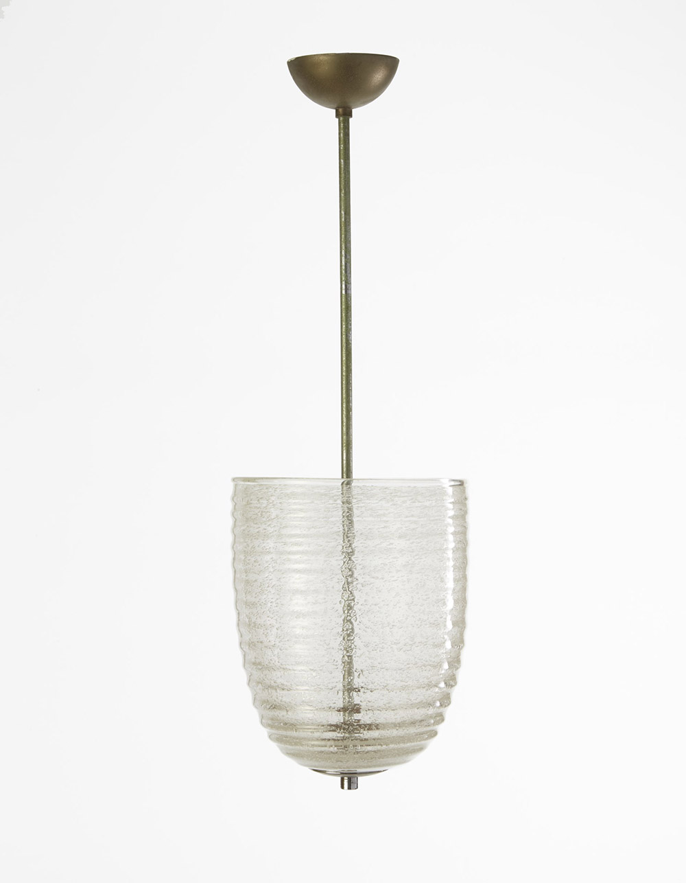 Manifattura di Murano Lampada a sospensione in vetro cristallo pulegoso, struttura in metallo nichelato. Anni 30 (h cm 70) Provenienza: collezione privata, Milano