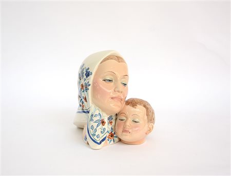 Giovanni Ronzan Nove di Bassano 1906 Bassano del Grappa 1974 "Madre e figlio", scultura in ceramica policroma. Firmata sotto la base "Ronzan, made in Italy" (h cm 25) (lievi difetti)