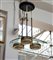Lampadario a tre luci in metallo e ottone con disco in vetro. Italia, anni 70 (h cm 85) (lievi difetti)