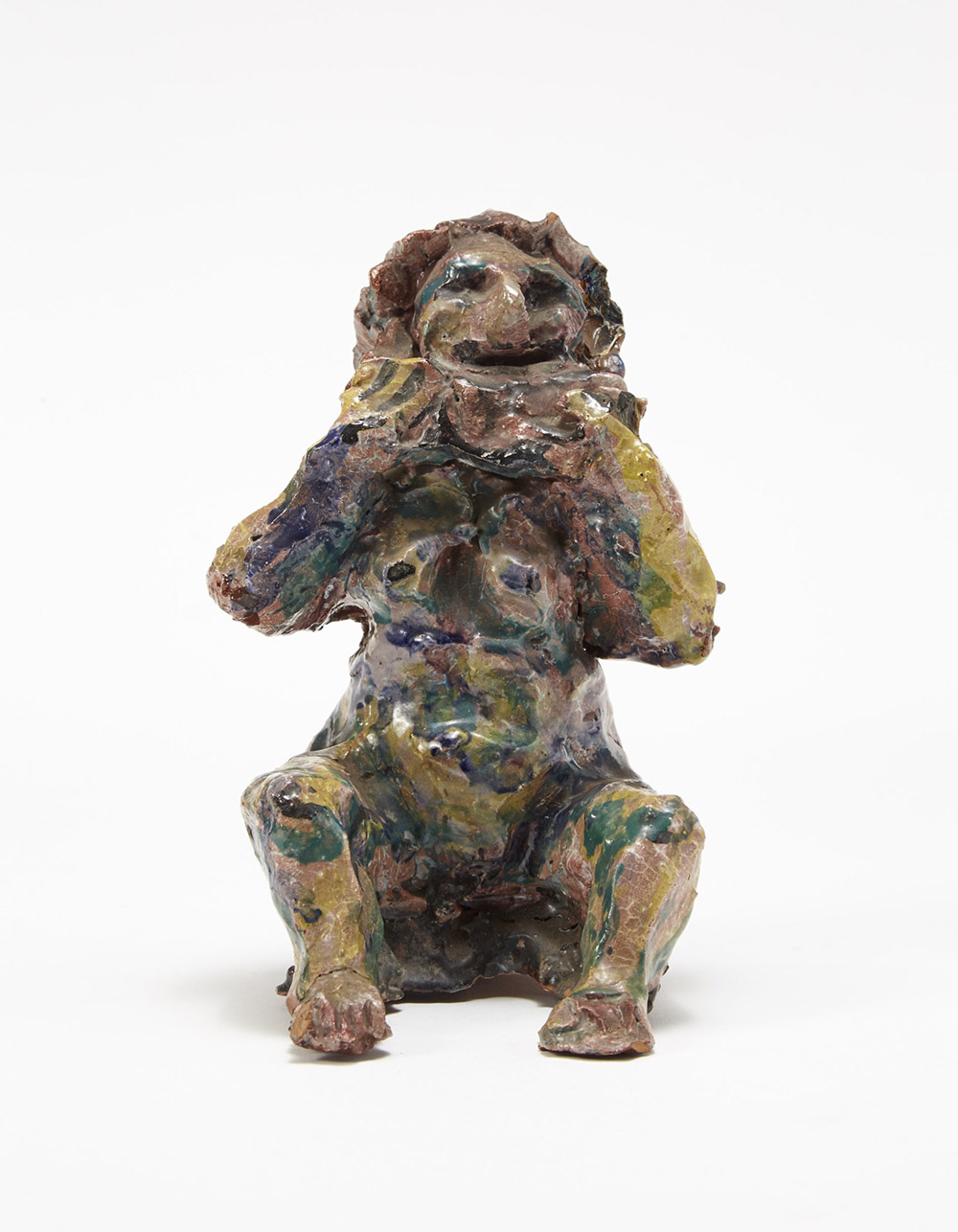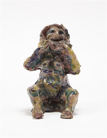 Piero Gauli Milano 1916 2012 "Nudo di donna seduta", Roma, 1949. Scultura in ceramica smaltata in policromia sotto vetrina. Firmata e datata sotto la base (h cm 20) (difetti)