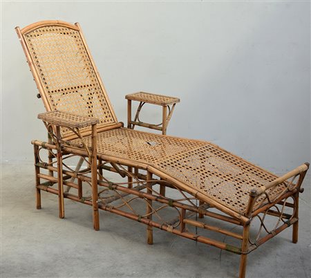 Chaise-longue in bambù con seduta a schienale in paglia, placchetta sul retro...