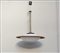 Goffredo Reggiani (attribuito) Lampada a sospensione in vetro lattimo satinato e disco in compensato di teak curvato. Produzione Reggiani, Italia anni 70 (h cm 80, d cm 60) (lievi difetti)