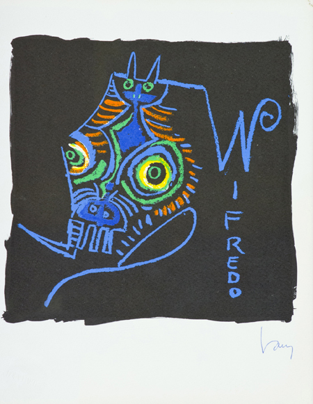 Wilfred Lam Sagua la Grande 1902 - Parigi 1982 L'alfabeto, la lettera W Riproduzione fotolitografica a sei colori offset, cm. 30x23,5, es. 2837/5000 espressamente eseguita per la serie "L'alfabeto" di Bolaffiarte in 5000 esemplari riservati ai primi abbonati. Firma in basso a destra, timbro a secco "Bolaffiarte", in basso a sinistra. Sul verso: descrizione.