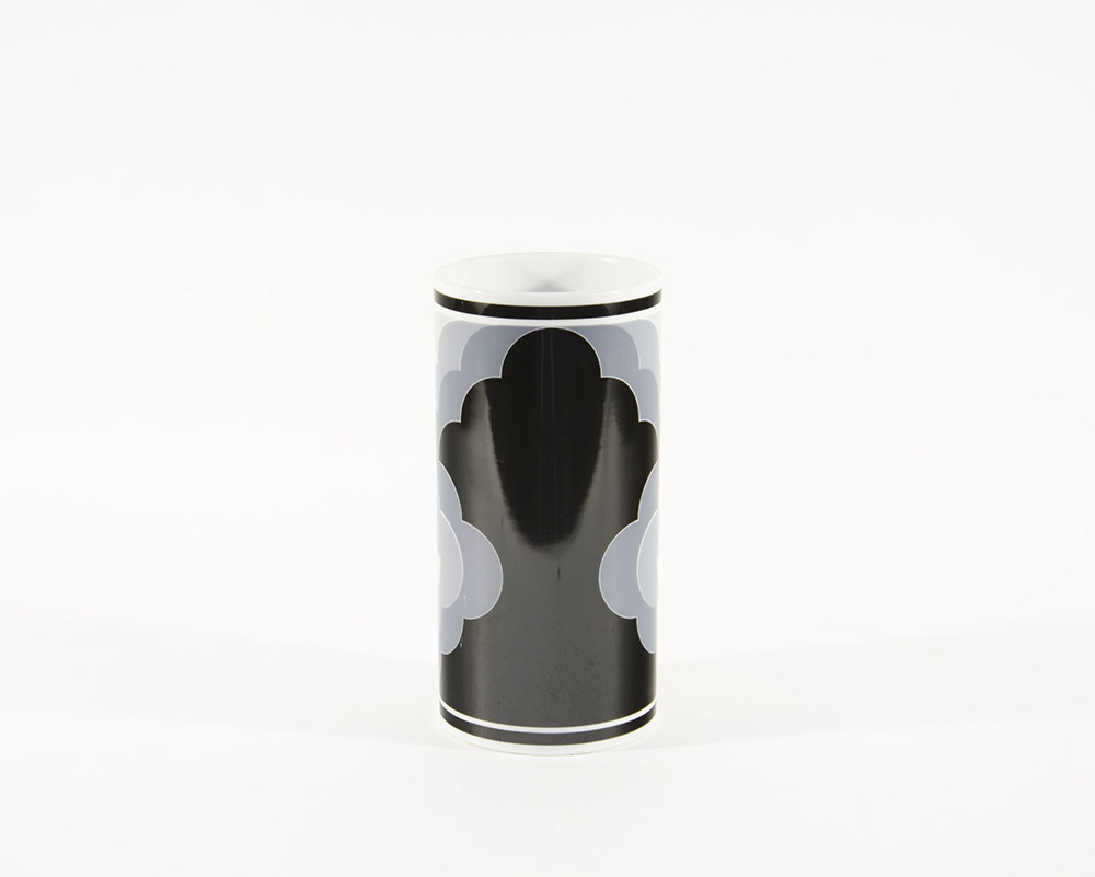 Natale Sapone 1921 2002 Vaso in porcellana smaltata nei colori del bianco, grigio e nero della serie "Studio Linie". Manifattura Rosenthal, Germania, anni 70. Numerato 41/400 (h cm 24,5, d cm 12) (gravi difetti)