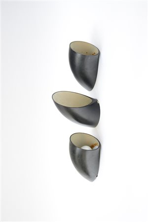 ELio Martinelli Lotto di tre lampade da parete in metallo verniciato nero....