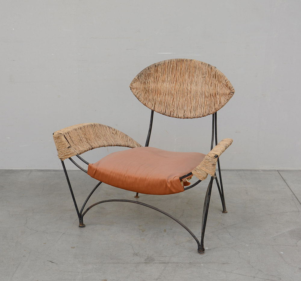 Tom Dixon Poltrona modello "Baby Fat". Struttura in tondino metallico, seduta, schienale e braccioli in paglia. Prosuzione Cappellini, Italia 2012 (cm 94x91x68) (difetti)