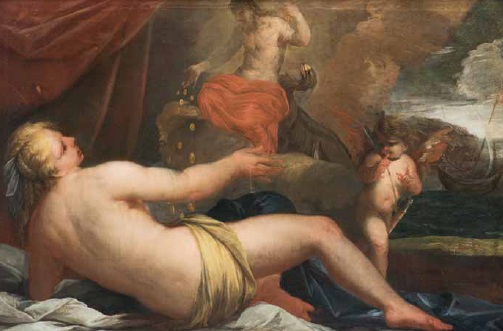 Lotto 28 | Scuola Francese della fi ne del XVII secolo DANAE olio su tela, cm 97x145.