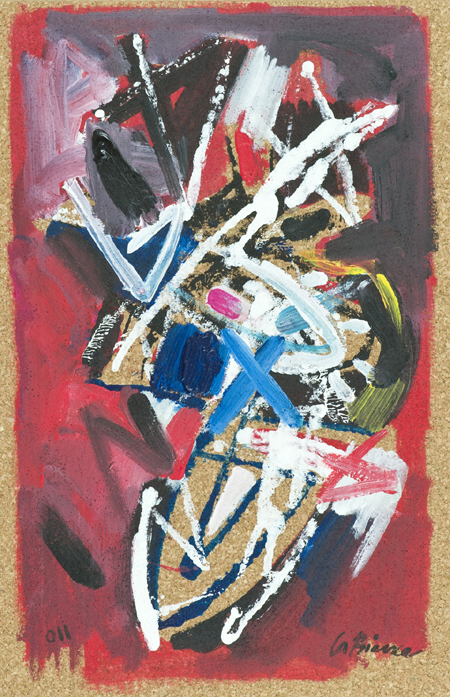 Dino La Bianca Viareggio 1941 Caos, 2011 Olio su sughero, cm. 57x37,5 Firma in basso a destra, data in basso a sinistra. Sul verso: firma, data e titolo.
