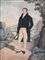 Scuola Francese del XIX secolo GENTILUOMO NEL SUO GIARDINO acquerello su...