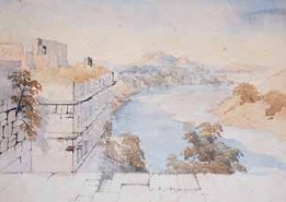 Lotto 48 | Scuola Inglese del XIX secolo ARCHITETTURE LUNGO FIUME INDIANO acquerello su...