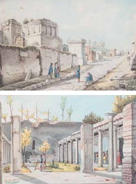 Scuola Napoletana del XIX secolo COPPIA DI VEDUTE DI ERCOLANO acquarello e china su carta, cm 13x19.
