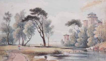 Scuola Francese del XIX secolo CASTELLO FRANCESE tempera su carta, cm 10x17.