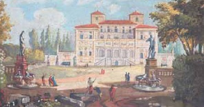 Scuola Romana del XIX / XX secolo VILLA BORGHESE tempera su tela, cm 10,5x18,5.