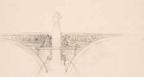 Armando Brasini (attribuito) Roma 1879 – 1965 BOZZETTO PER PONTE FLAMINIO A ROMA matita su carta, cm 23x41.