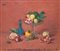 Alberto Salietti Ravenna 1892 - Chiavari 1961 NATURA MORTA FONDO ROSSO olio su compensato, cm 50x60. Firmato e datato in alto a sinistra: Salietti 46 Esposizioni: Milano, Natale dell’arte, 18-31 dicembre 1949 (etichetta al retro).