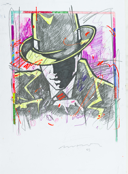 Enrico Manera Asmara 1948 Dick tracy, 2003 Tecnica mista su cartoncino, 100x70 Firma, data e titolo in basso in basso al centro. Autentica dell'Artista su foto.