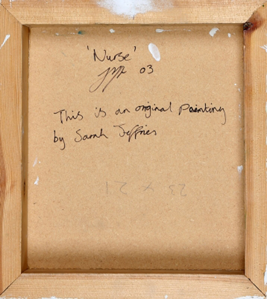 SARAH JEFFREIES 1979 Nurse, 2003 Olio su tavola, cm. 23 x 21 Firmato e datato...