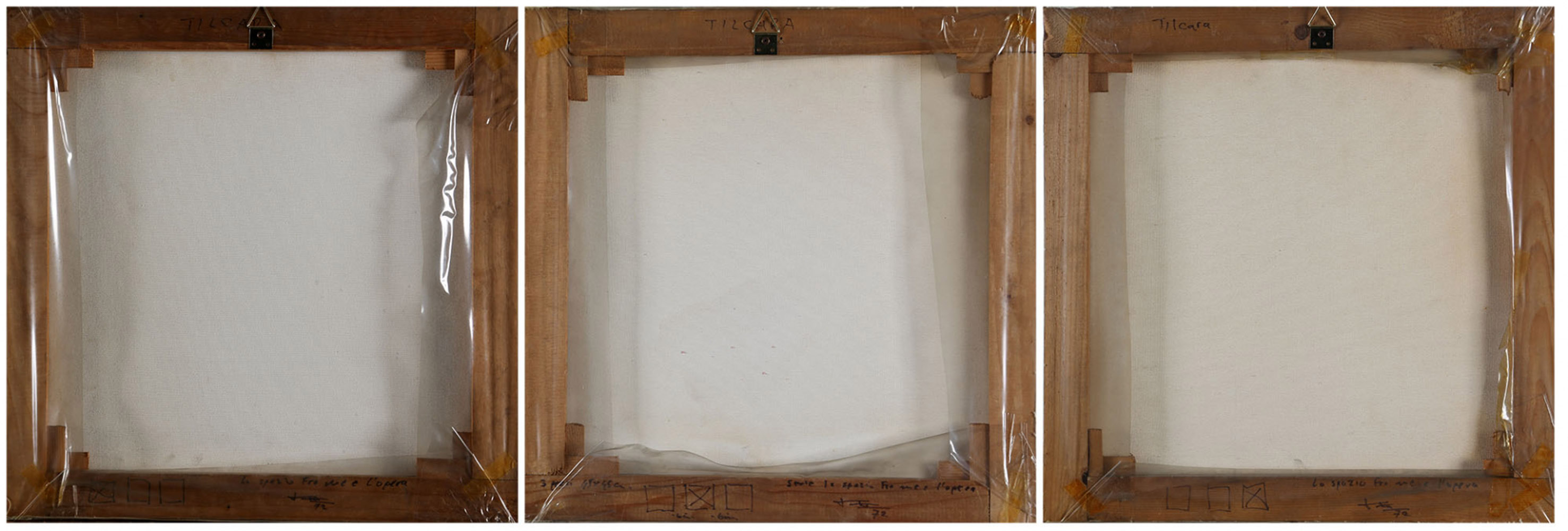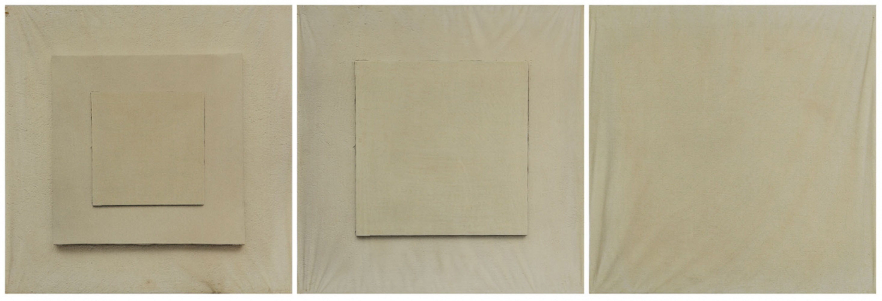 ANTONIO TROTTA 1937 Lo spazio fra me e l’opera, 1972 Riporto fotografico su tele emulsionate (trittico), cm. 45 x 45 cadauno Firmato e datato sul retro Autentica dell’artista su fotografia Prov. Collezione Privata