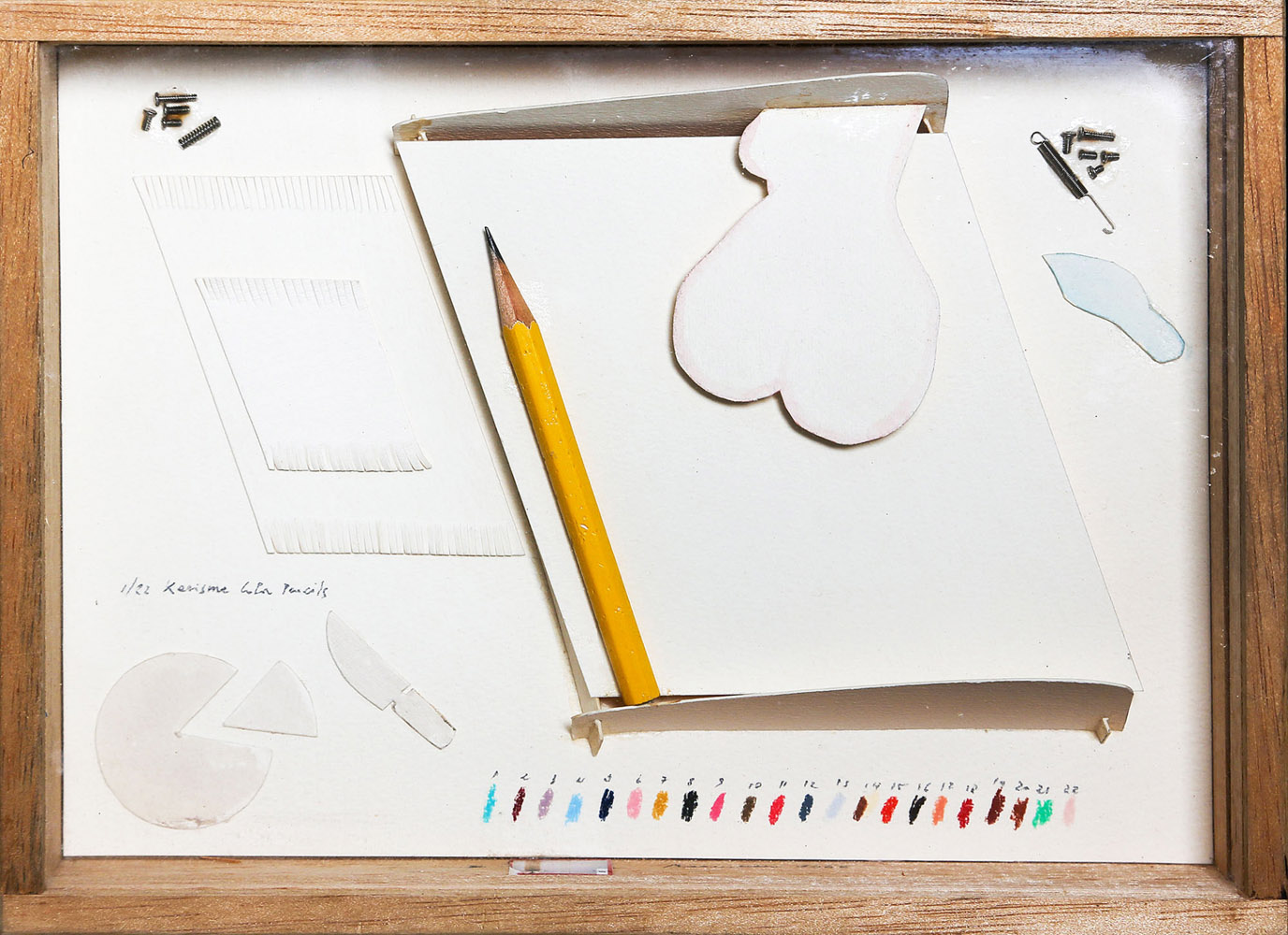 GIANFRANCO BARUCHELLO 1924 Materiale didattico per specialisti in visual studies, 1990 – 2006 Box, cartone, matita, viti, legno e vetro, cm. 19 x 26 x 5,5 Firmato e datato Certificato di Autenticità a cura della Fondazione Baruchello, Roma Prov. Collezione Privata