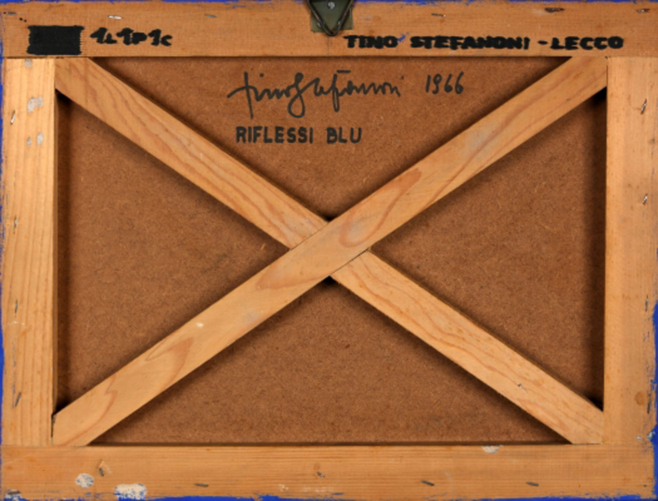 TINO STEFANONI 1937 Riflessi blu, 1966 Tecnica mista e rilievi su tavola, cm. 30 x 40 Firmato e datato sul retro Prov. Collezione Privata