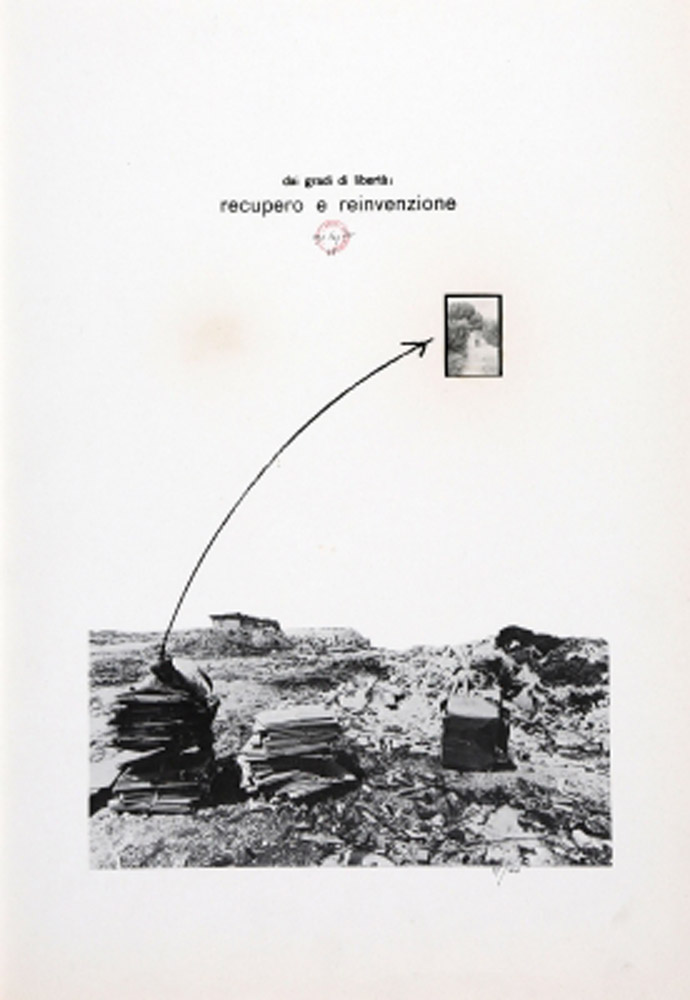 UGO LA PIETRA 1938 Dai gradi di libertà: recupero e reinvenzione, 1975 Stampa e collage, multiplo, cm. 50 x 35 Esemplare n. 51/100 Firmato e datato Autentica dell’artista su fotografia Timbro Archivio Ugo La Pietra su fotografia Prov. Collezione Privata