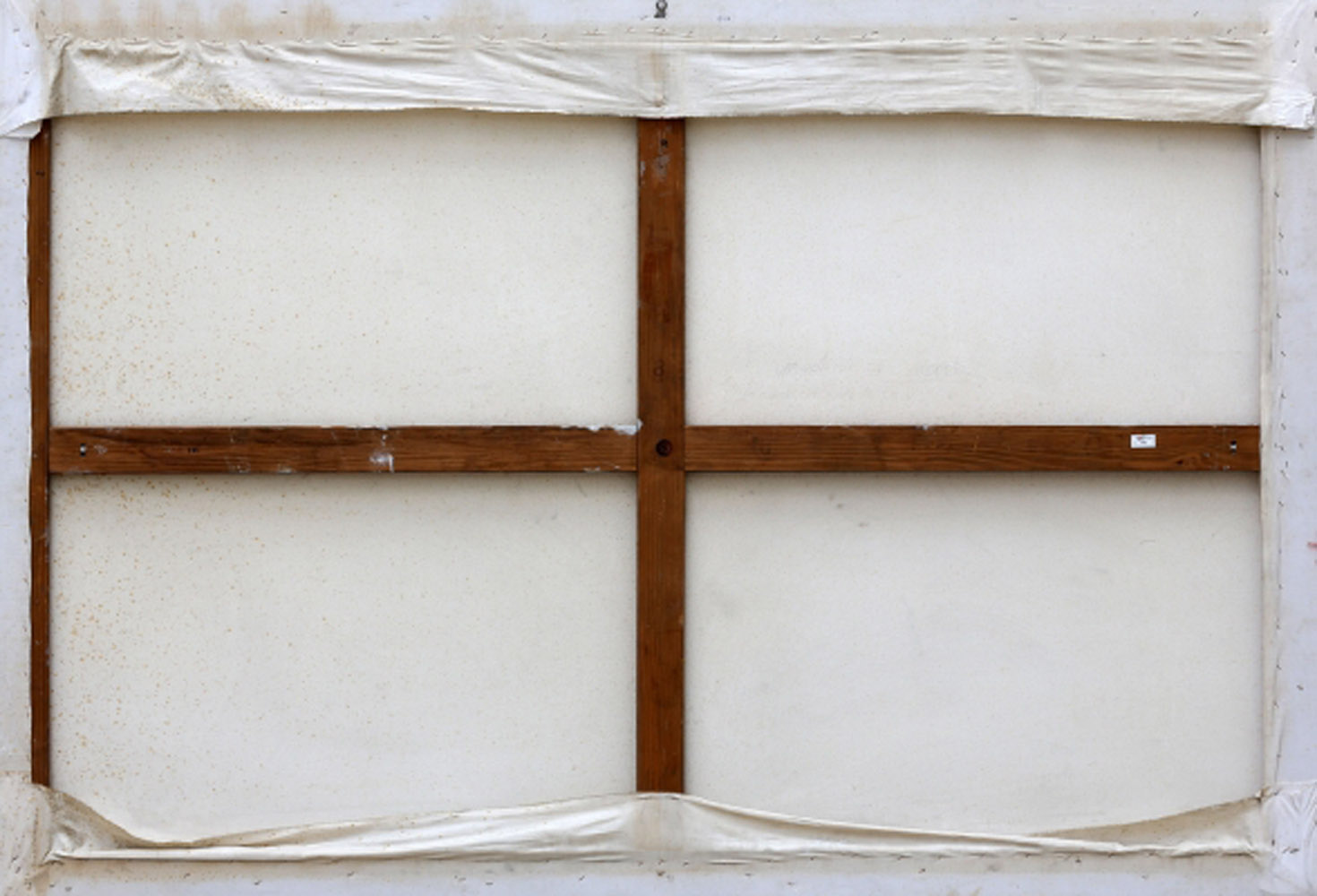 MARCO GASTINI 1938 Lo spazio che porta la pittura, 1978 Tecnica mista su tela, cm. 165 x 240 Firmato e datato sul retro Timbro Grossetti Arte, Milano sul retro Etichetta Fondazione VAF sul retro PUBBLICAZIONI: “Pittura Analitica”, Fondazione VAF, Silvana Editoriale, 2008, p. 115 (fotografia pubblicata nel verso errato) Prov. Collezione Privata