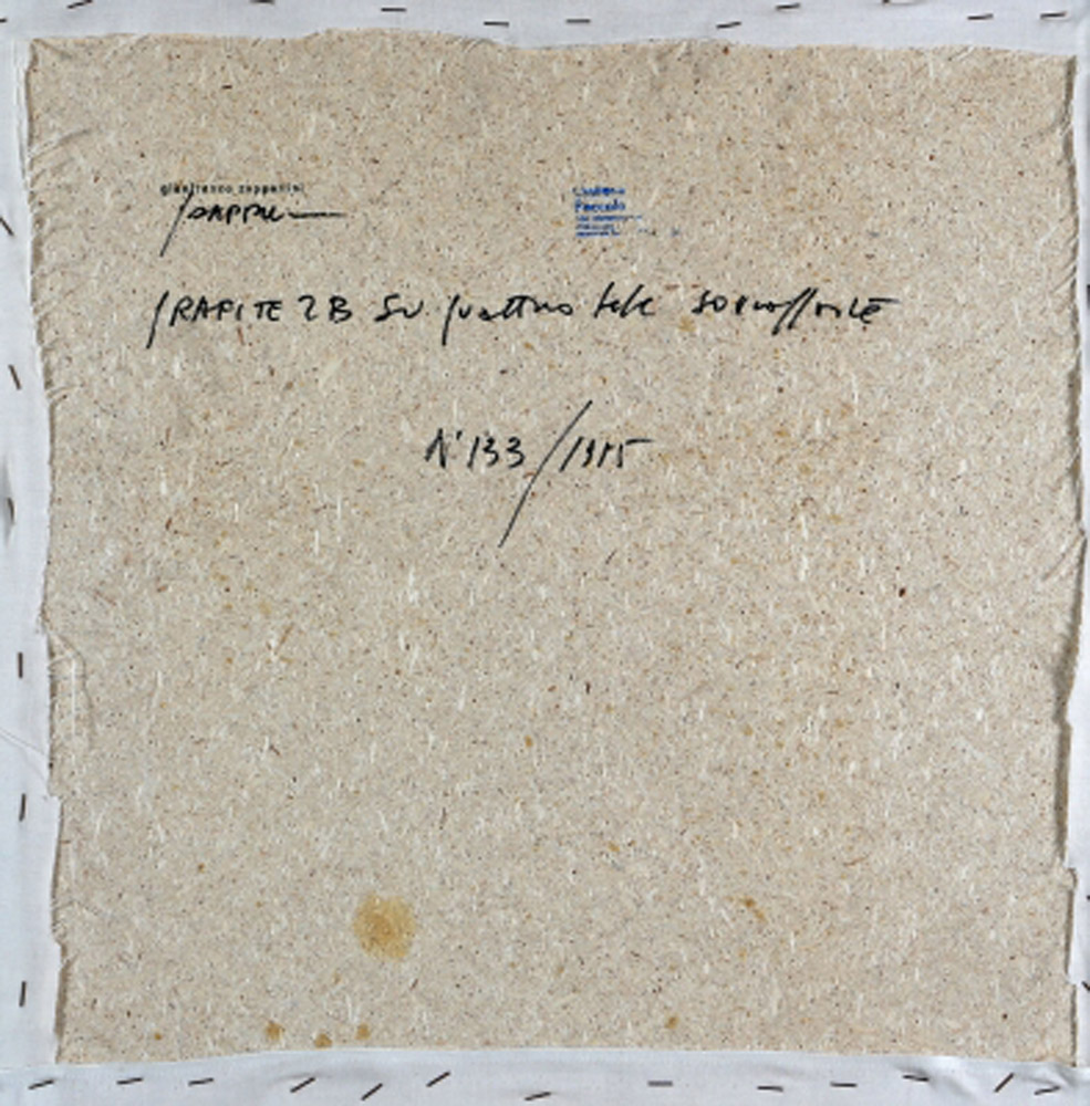 GIANFRANCO ZAPPETTINI 1939 n. 133/1975, 1975 Grafite 2B e tele sovrapposte su tavola, cm. 60 x 60 Firmato e datato sul retro Timbro dell’artista sul retro Timbro Galleria Peccolo, Livorno sul retro Prov. Collezione Privata