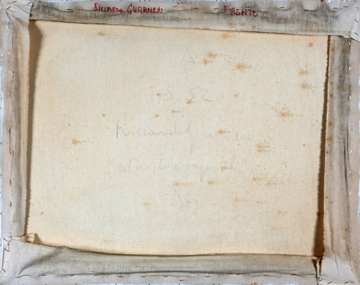 RICCARDO GUARNERI 1933 Ritmi/luce orizzontali, 1975 Tecnica mista su tela, cm. 80 x 100 Firmato e datato sul retro Autentica dell’artista su fotografia Prov. Collezione Privata