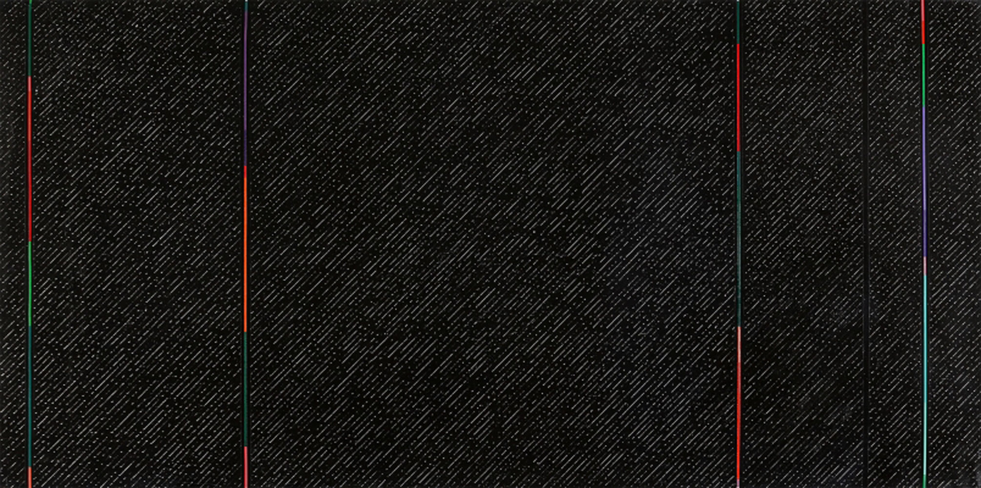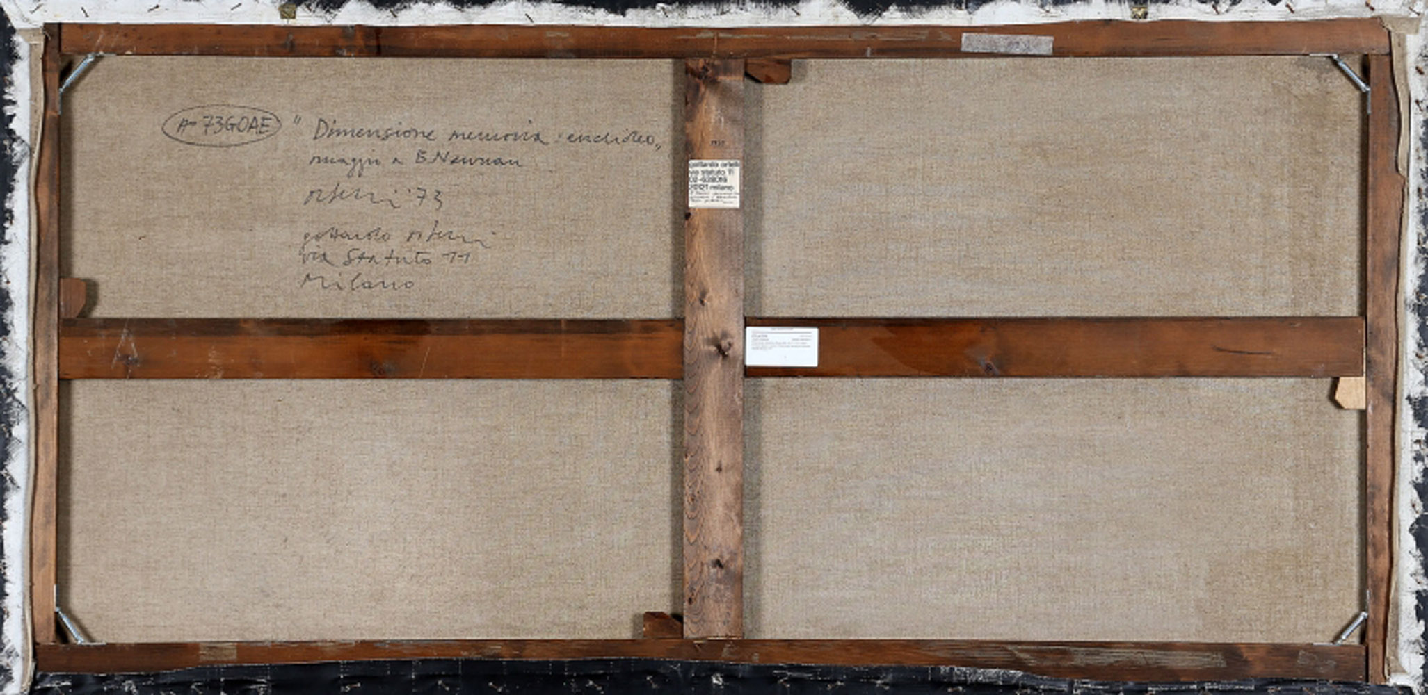 GOTTARDO ORTELLI 1938 – 2003 Dimensione memoria, omaggio a B. Newman, 1973 Olio su tela, cm. 97 x 195 Firmato e datato sul retro Etichetta dell’artista sul retro Prov. Collezione Privata