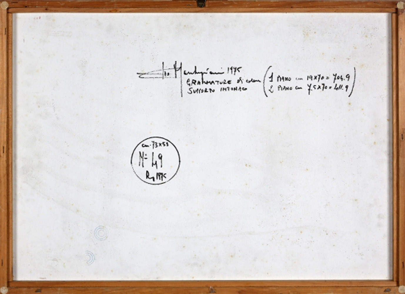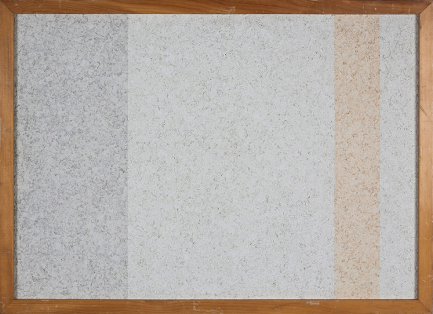 ELIO MARCHEGIANI 1929 Grammature di colore, 1975 Grammature di colore su intonaco, cm. 53 x 73 Firmato e datato sul retro Timbro dell’artista sul retro Autentica dell’artista su fotografia Prov. Collezione Privata