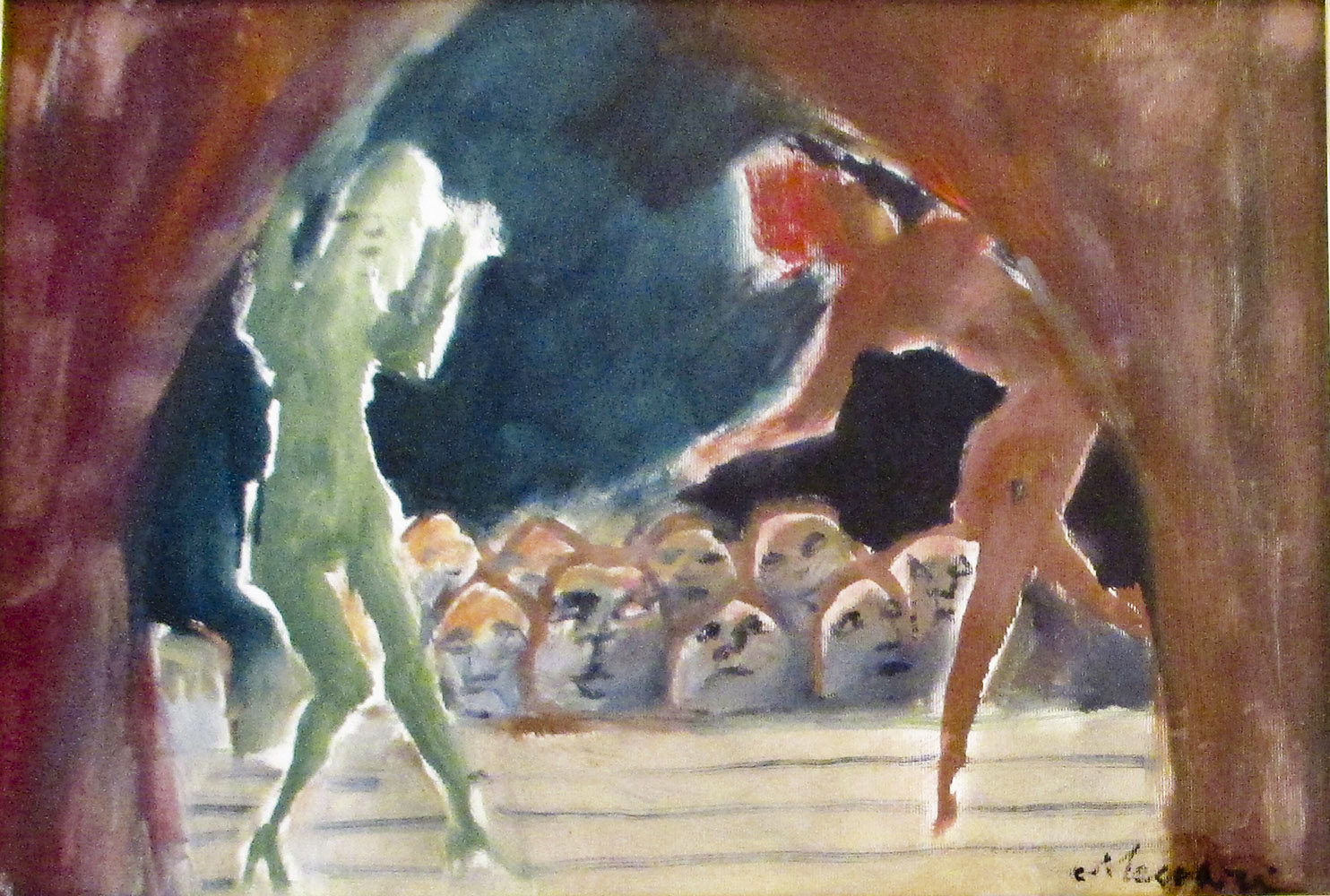 MINO MACCARI "al teatro" olio su tela 35x50 anni ’80 autentica dell’artista...