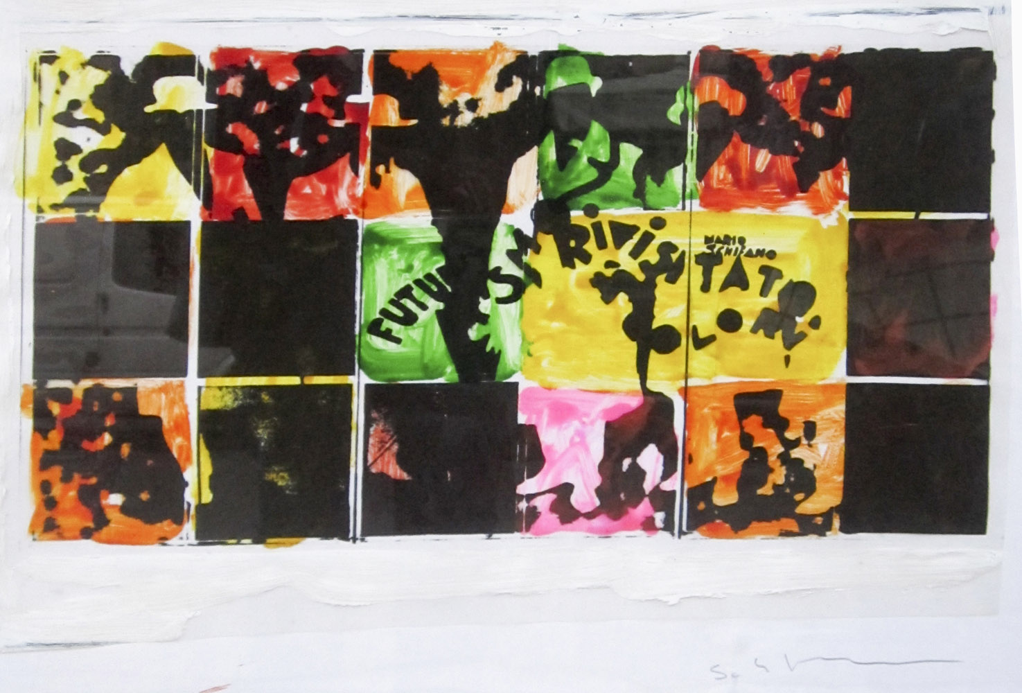 MARIO SCHIFANO "Futurismo Rivisitato" 100X70 1975, smalto e gelatina su carta autentica multistudio