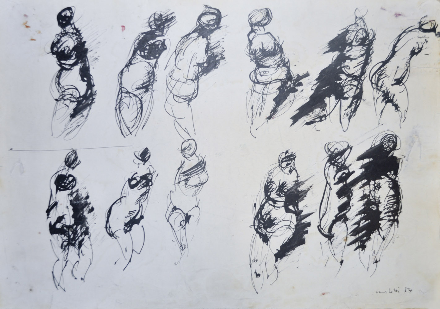 Lotto 61 | ENNIO MORLOTTI "Figure" 1954, china su carta, 35 x 50 con autentica
