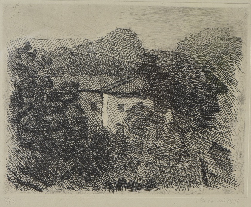 GIORGIO MORANDI "paesaggio di roffeno" 15,5x19,8 acquaforte 1936 autentica...