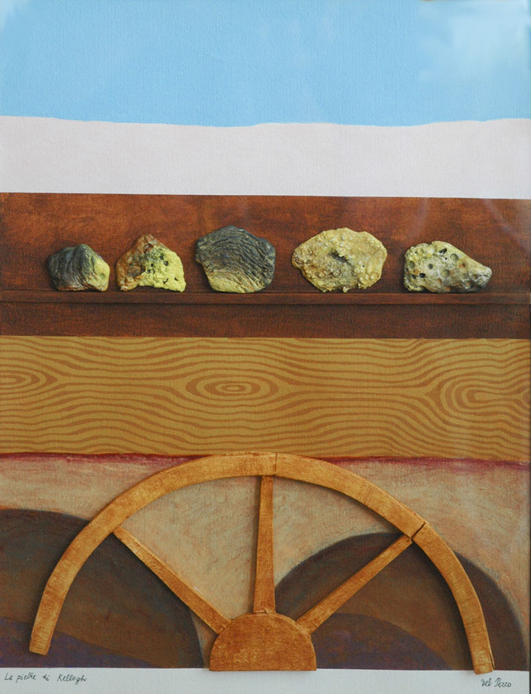 LUCIO DEL PEZZO tecnica mista su tela 30x40 2000 - Le pietre di Kellog...