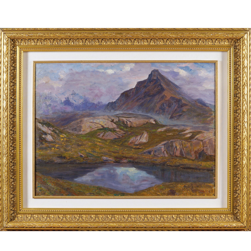 "Paesaggio Alpino", olio su tela, anno 1907, firmato in basso a destra, entro cornice.