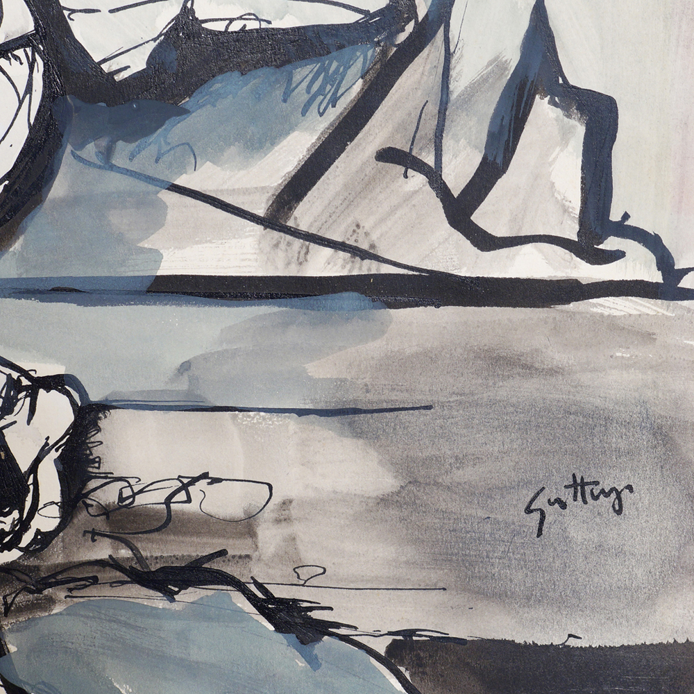 Renato Guttuso Bagheria 1911 - Roma 1987 49,5x48,5 cm. "Senza titolo", tecnica mista su carta, firmata in basso a destra, entro cornice