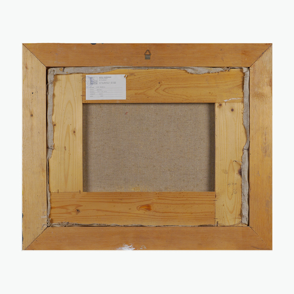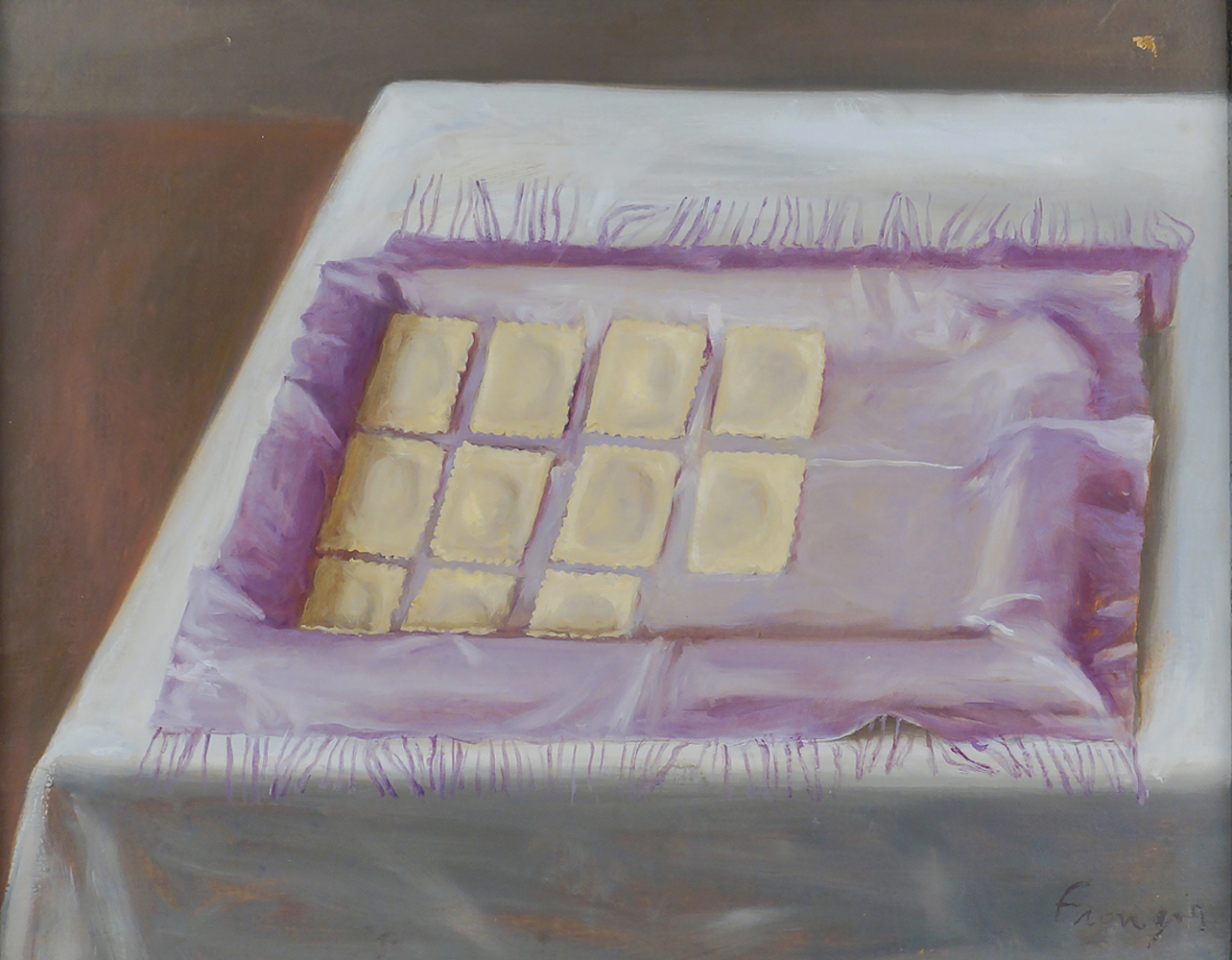 Lino Frongia Montecchio, 1958 dim. 44x56 cm. "Ravioli", olio su tela, firmato e datato 1989 in basso a destra, entro cornice in legno ebanizzato
