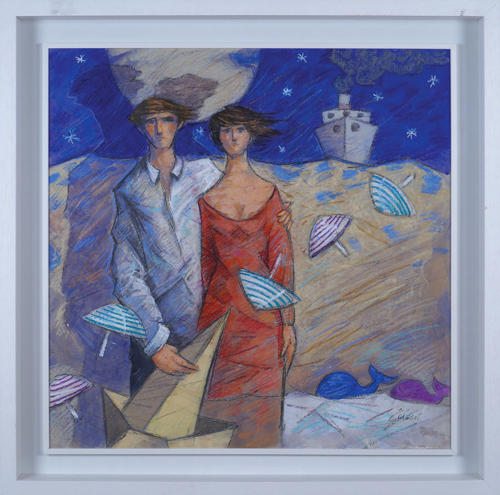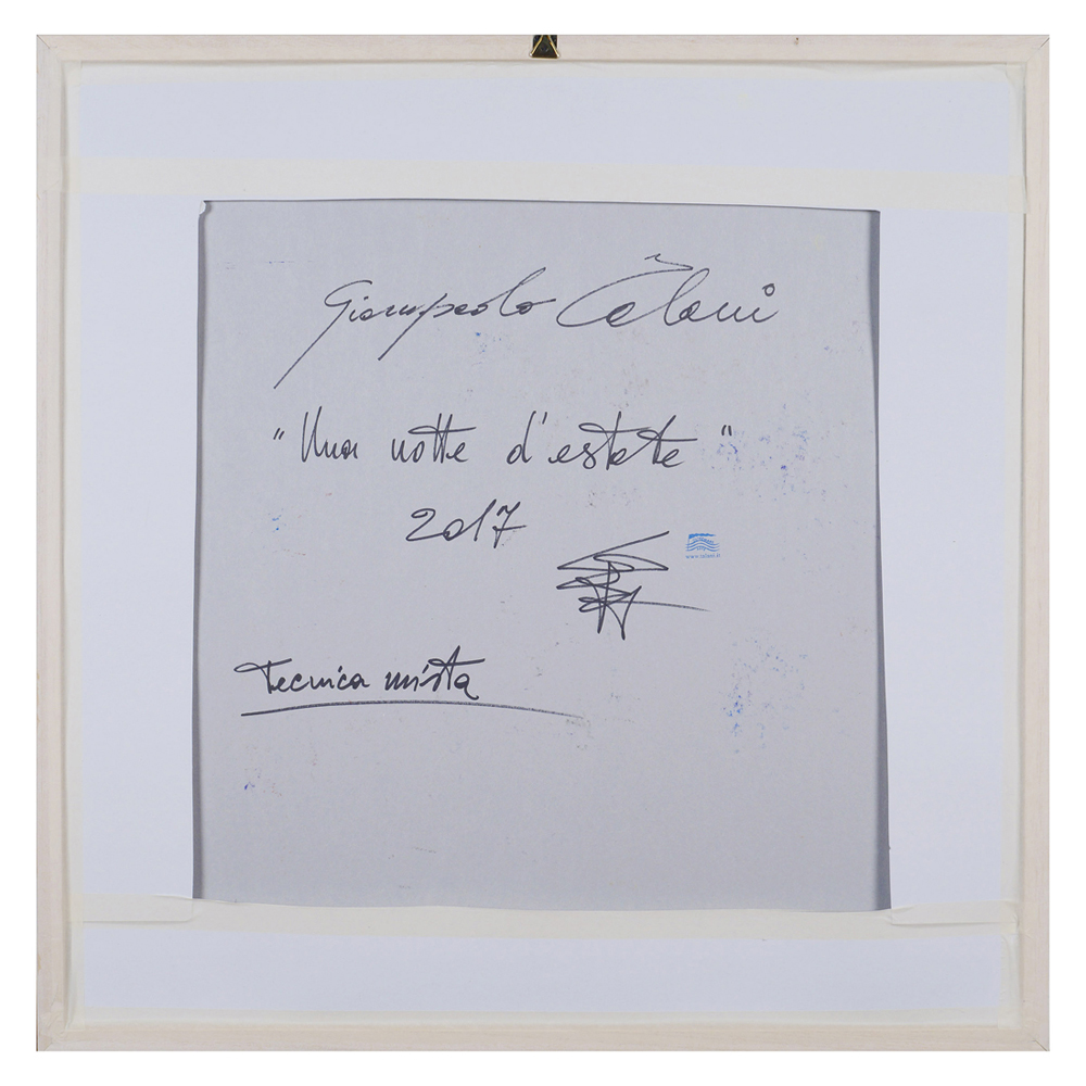 "Una notte d'estate", tecnica mista su cartoncino, 2017, firmata in basso a destra, titolo, firma e data al verso,