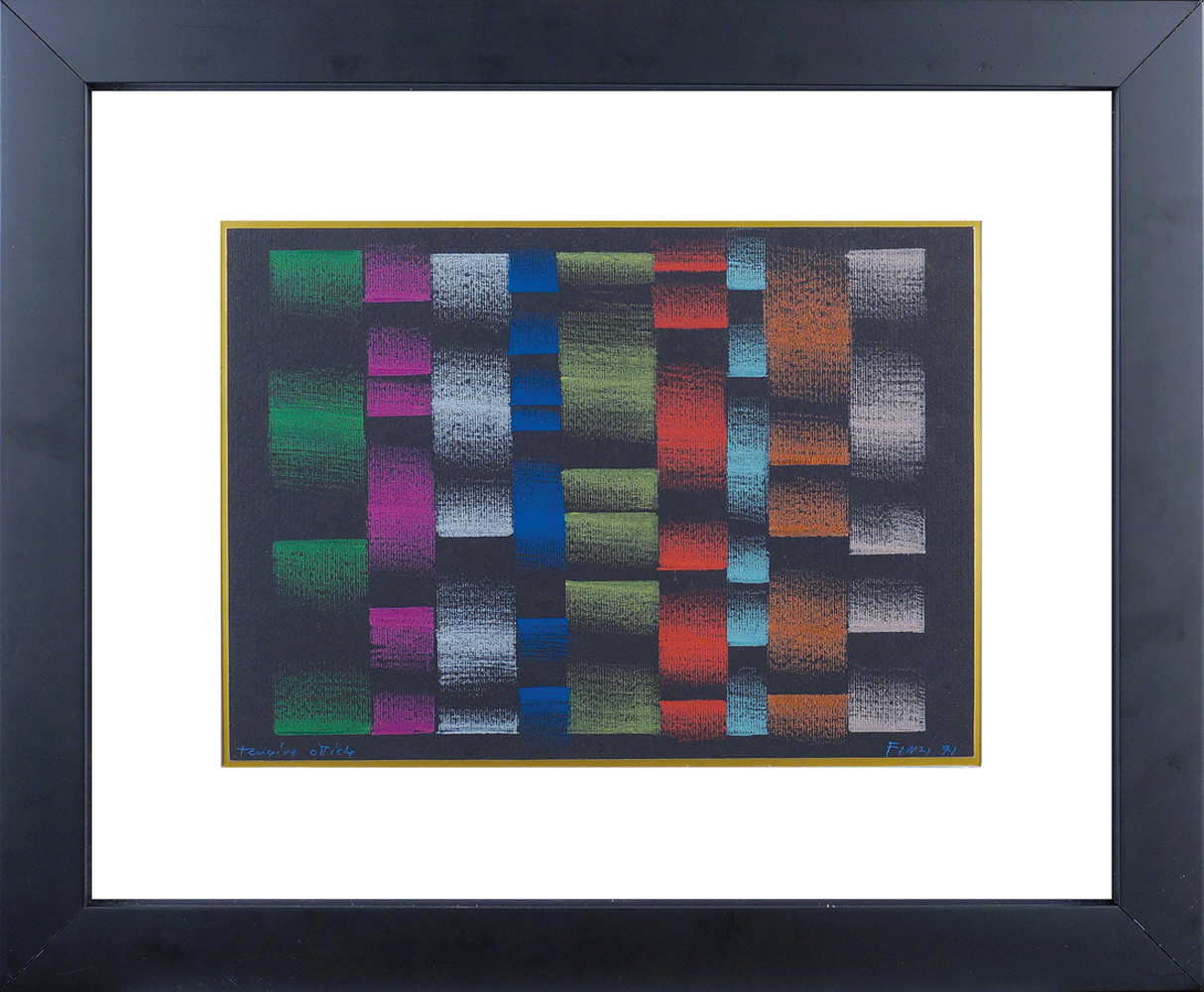 Ennio Finzi Venezia 1931 25x35 cm. "Tensive ottiche", pastelli su cartoncino, 1971, firmato e datato in basso a destra, entro cornice