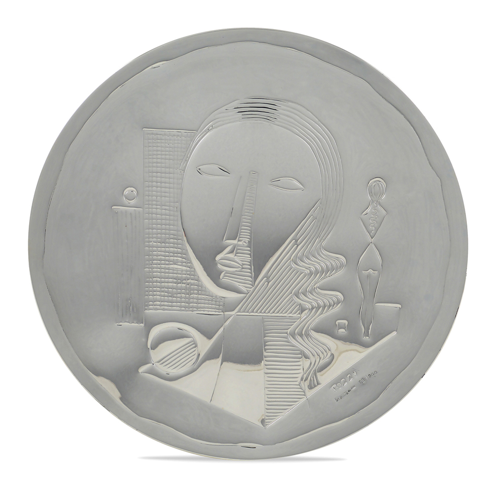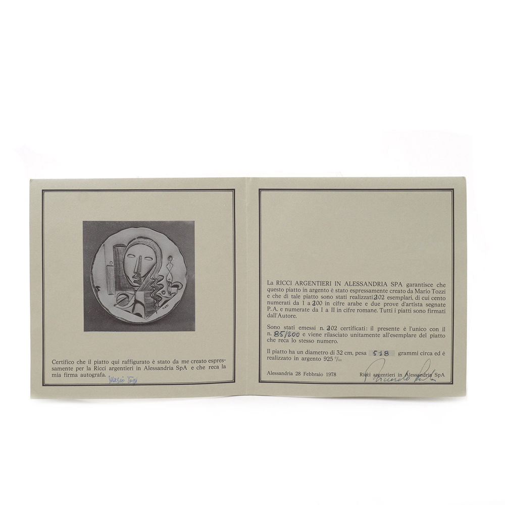 Mario Tozzi Fossombrone 1895- Saint-Jean-du-Gard,1979 peso 518 gr. piatto in argento eseguito da Ricci&co - Alessandria per la collezione i maestri dell'arte, es. 85/200 firmato e numerato, completo di scatola e certificato, d.32 cm.