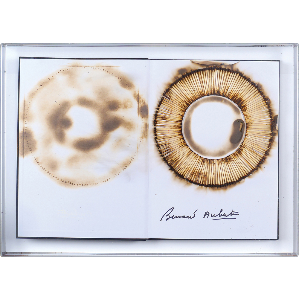 Bernard Aubertin Fontaney-aux-Roses 1934 - 2015 30x46 cm. "Senza titolo", combustione su catalogo, firmata, entro teca in plexiglass