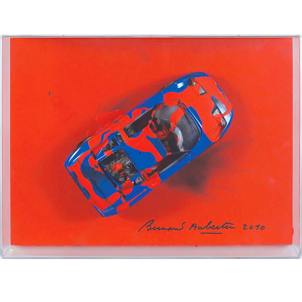 Bernard Aubertin Fontaney-aux-Roses 1934 - 2015 30x40 cm. "Bugatti", acrilico con macchina combusta, entro teca in plexiglass, 2010, firma e data in basso a destra